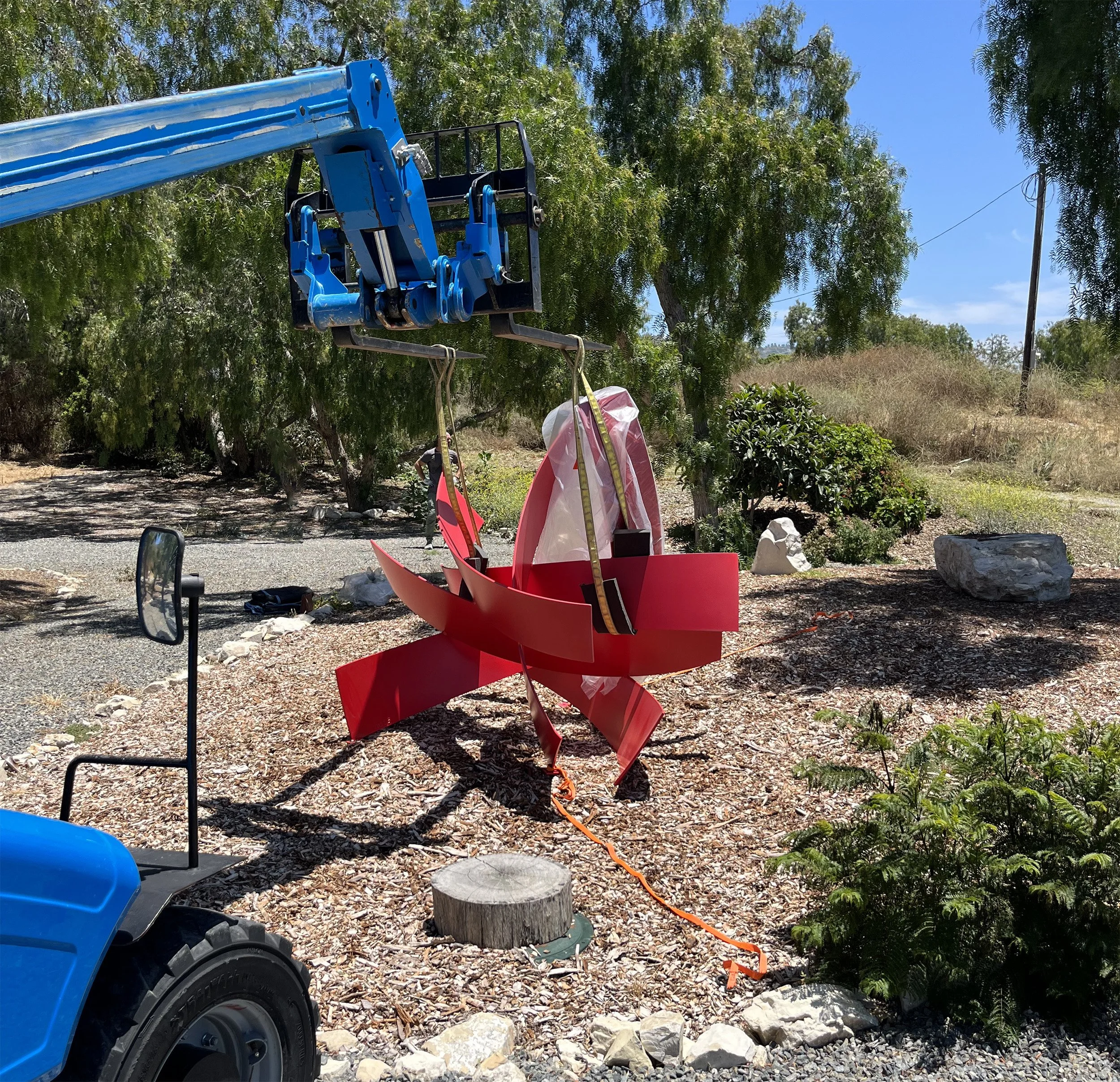 With the trusted team from Level One Art Installation by my side, the installation process continued smoothly. A well-orchestrated forklift maneuver expertly executed by the team ensured precise placement of the sculpture on the property.